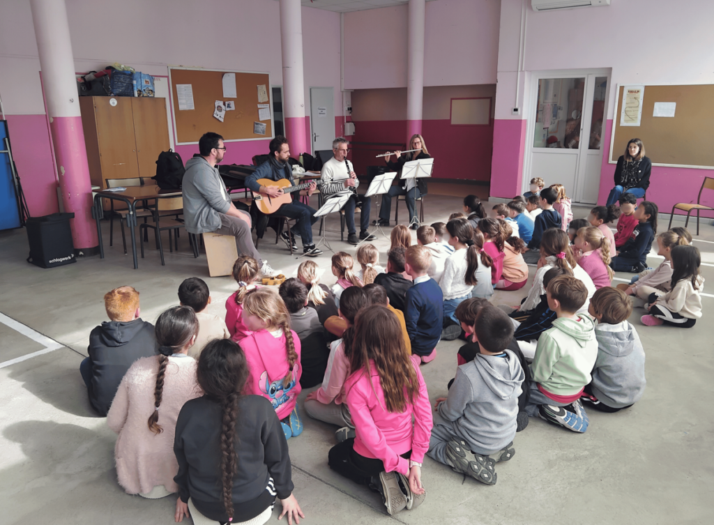 L’objectif de ce type d’intervention « pédagogique » est de faire découvrir aux enfants différents instruments de musique autour d’un répertoire venu d’ailleurs , ce jour là l’option choisie fut des musiques traditionnelles latino-américaines.